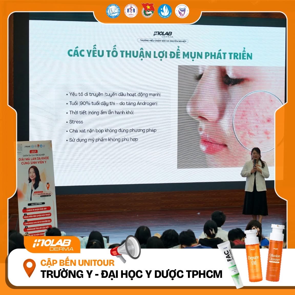 Trong môi trường học tập áp lực của sinh viên ngành Y Dược, việc chăm sóc bản thân đôi khi dễ bị bỏ quên giữa lịch học dày đặc và những đêm ôn bài kéo dài. Nhận thấy được điều đó, vừa qua Inolab Derma đã tổ chức Workshop với chủ đề “Bí kíp chăm da chuyên nghiệp - Giải mã làn da khỏe cùng sinh viên Y” tại Đại học Y Dược TP.HCM nhằm chia sẻ kiến thức chăm sóc da khoa học đến các bạn sinh viên.